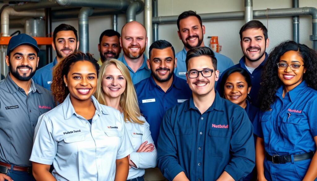 Professional plumber working on pipes showcasing plumbing careers and businesses
